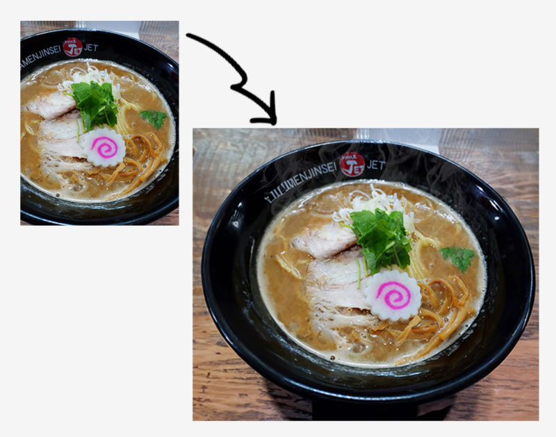 ラーメン屋さんで撮った、両橋が切れたラーメンの写真を使用しました。